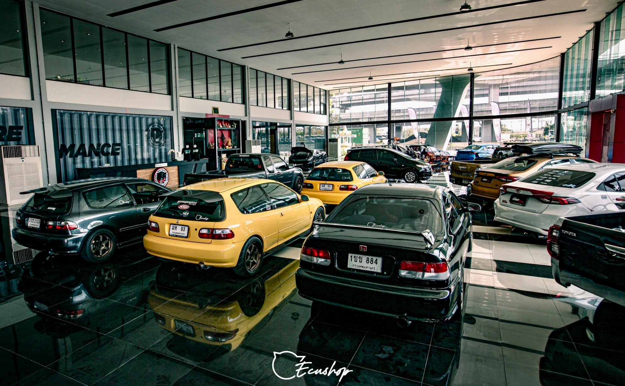 The Marketing, Sales Administration and Showroom centre in Bangkok is 5,000m2 with 4 apartments on the 2nd level for International ECU-SHOP dealers to stay when they are visiting Thailand for training.